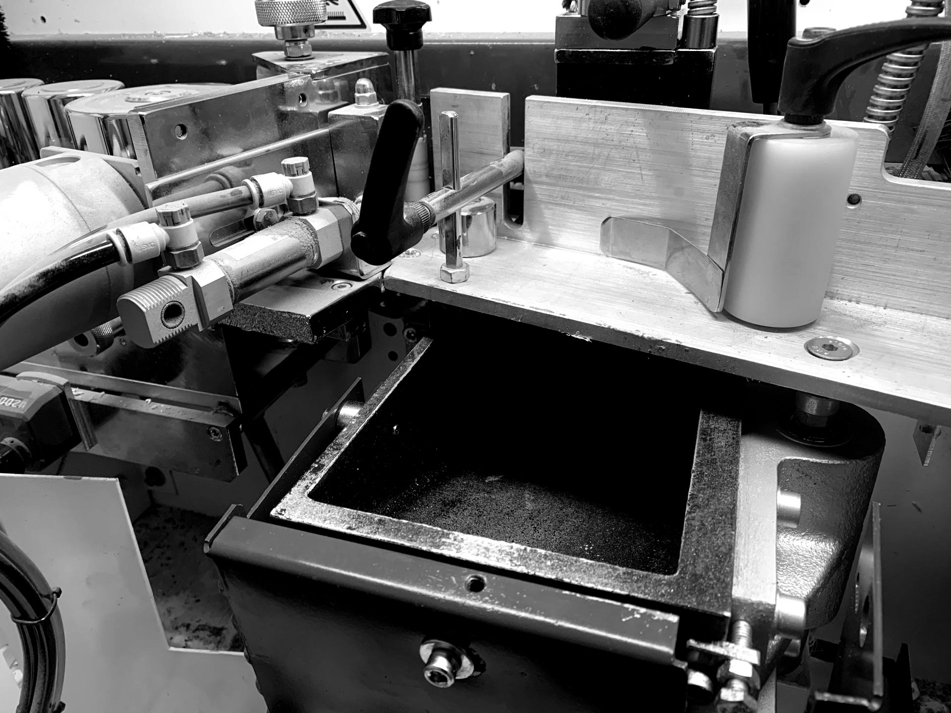 Diese Woche haben wir bei einem unseren Kunden aufgrund von Umstrukturierungen die Absauganlage umgebaut. Dazu kam dann heute die neue Breitbandschleifmaschine der Firma Houfek und nächste Woche bekommt er dann seine neue Kombimaschine. Wenn der Kunden zufrieden ist, sind wir es auch.